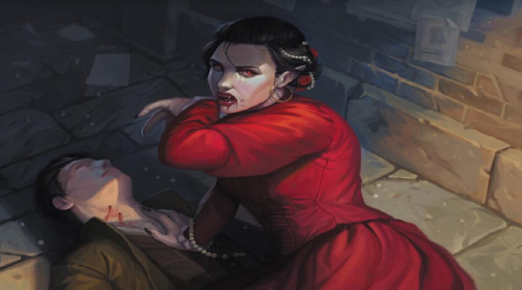 Alfombrilla para juegos de cartas coleccionables. Diseño de Vampiro.